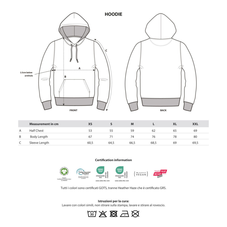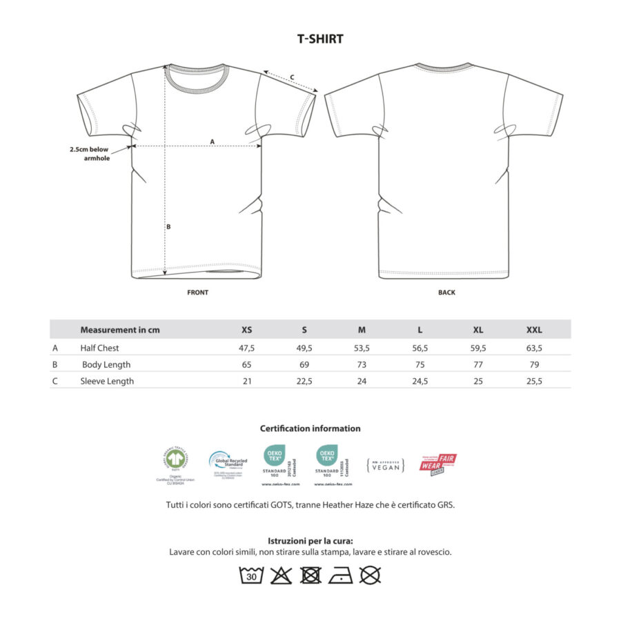 Lavare con colori simili, non stirare sulla stampa, lavare e stirare al rovescio.